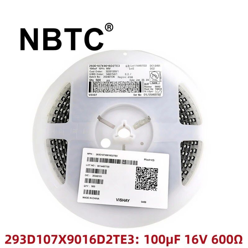 293D107X9016D2TE3: 100µF Molded Tantalum Capacitors 16 V 2917 (7343 Metric) 600mOhm